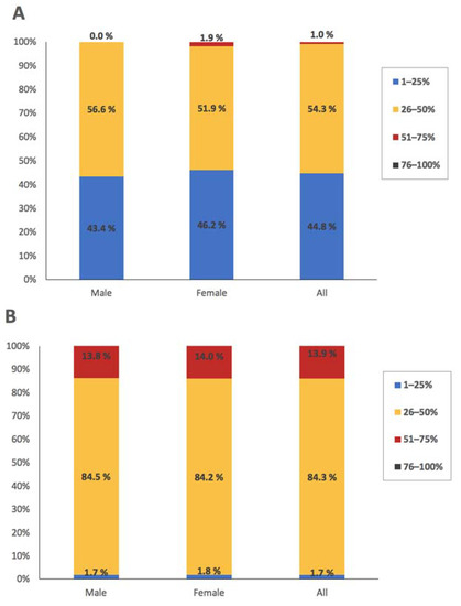 | All Median (Q1, Q3) | Male Median (Q1, Q3) | Female Median (Q1, Q3) | p-Value * | |