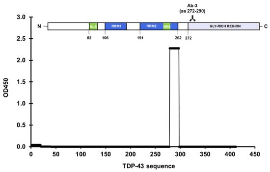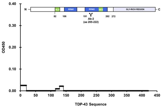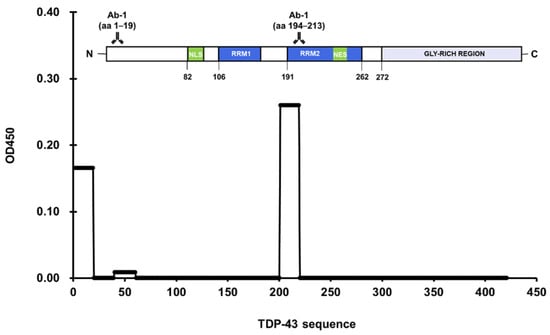 Significant absorbance values were found in regions aa 1–19 and aa 194–213 for polyclonal anti-TDP-43 antibody (10782-2-AP).