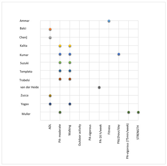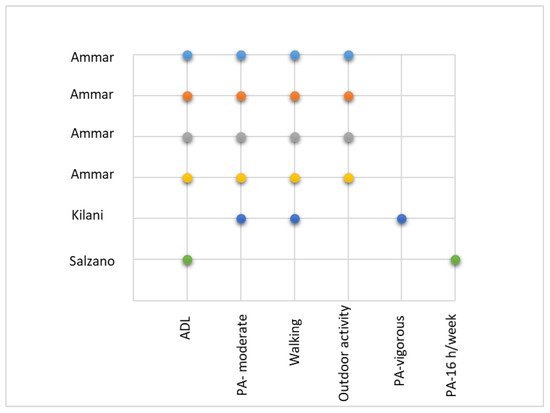 Physical activity (PA) has been studied in terms of types of physical activity and is presented in Figure 3.