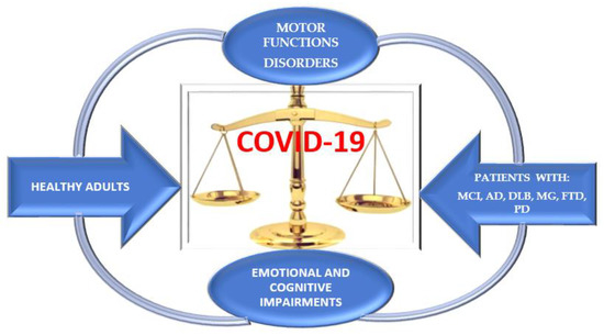 Impairment of motor and cognitive status has been shown to be similar, in both healthy adults and patients with neurodegenerative pathology during isolation at home (Figure 4).