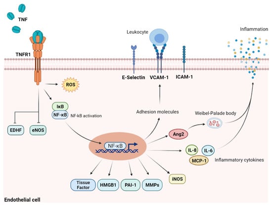 These constituents will act on EC in an autocrine way, further amplifying the inflammatory state of the EC. In such a way, TNF-α may trigger an amplifying and self-perpetuating loop (Figure 5).