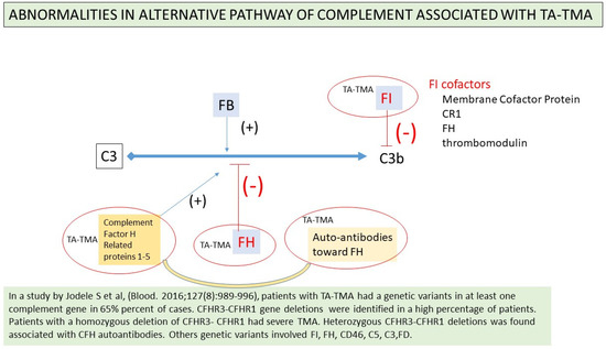- Okamura, H.; Nakamae, H.; Shindo, T.; Ohtani, K.; Hidaka, Y.; Ohtsuka, Y.; Makuuchi, Y.; Kuno, M.; Takakuwa, T.; Harada, N.; et al. Early Elevation of Complement Factor Ba Is a Predictive Biomarker for Transplant-Associated Thrombotic Microangiopathy. Front. Immunol. 2021, 12, 2669. [Google Scholar] [CrossRef] [PubMed]