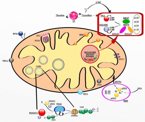 - El-Hattab, A.W.; Scaglia, F. Mitochondrial DNA depletion syndromes: Review and updates of genetic basis, manifestations, and therapeutic options. Neurotherapeutics 2013, 10, 186–198. [Google Scholar] [CrossRef]