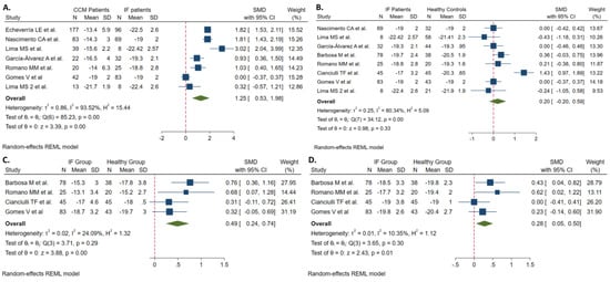 | Studies | Publication Year | Country | Total Patients | CCM Patients | Mean Age of CCM Patients | CCM Men (%) | IF Patients | Mean Age of IF Patients | IF Men (%) | Healthy Controls | Mean Age of Healthy Controls | Controls Men (%) |