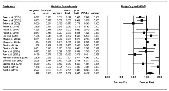 PES within intervention group pre-post meta-analysis [58,62,65,66,68].