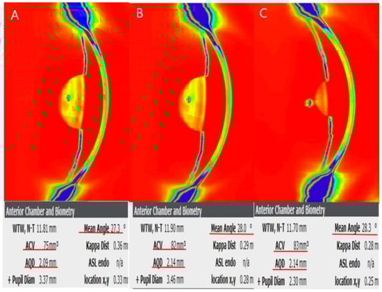 - Kwon, J.; Sung, K.R.; Han, S. Long-term Changes in Anterior Segment Characteristics of Eyes With Different Primary An-gle-Closure Mechanisms. Am. J. Ophthalmol. 2018, 191, 54–63. [Google Scholar] [CrossRef] [PubMed]