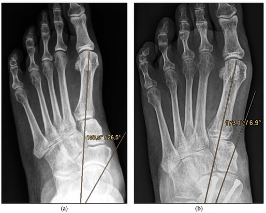 A subgroup analysis of patients with a remaining deformity smaller or larger than 10° in the talo–first metatarsal angle on lateral and dorsoplantar view did not reveal any conclusions on the clinical outcome. In both groups, two cases suffered a nonunion of the talonavicular joint. Only one out of four patients was a smoker. This confirms the higher rate of pseudarthrosis in the talonavicular joint than other foot joints [15,32,33,34]. Burrus et al. reported a nonunion rate of 44% [35]. The obvious causes are the generally critical blood supply to the talus as well as the sclerotic lesions of the os naviculare in patients with AAFD due to incorrect loading.