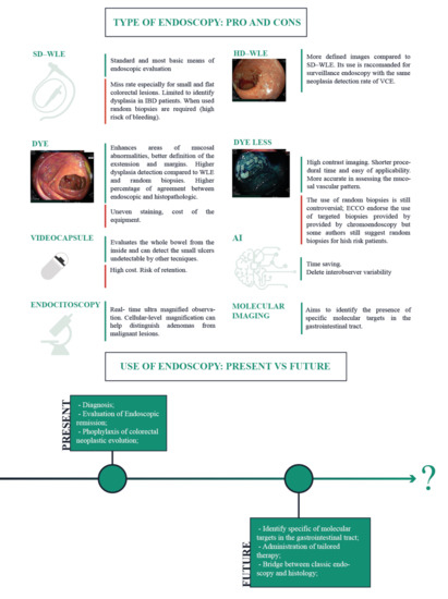 Technological advances are reshaping the role of endoscopy and expanding it into other fields such as precision medicine. The aim of this review is to present the applications of endoscopy in the management of IBD and evaluate the latest advances and future developments (Figure 1).