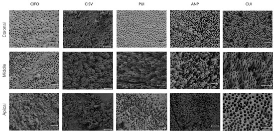 - Perdigão, J.; Lopes, M.M.; Gomes, G. Interfacial adaptation of adhesive materials to root canal dentin. J. Endod. 2007, 33, 259–263. [Google Scholar] [CrossRef]