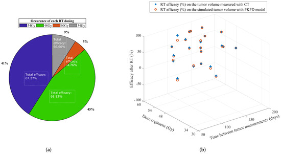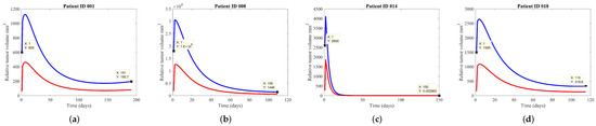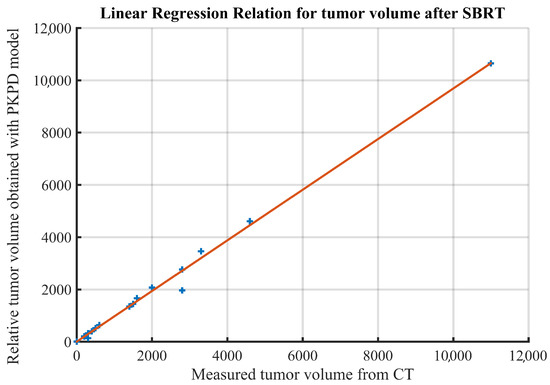 Most principles of tumor growth are expressions of ordinary differential equations [15], but recent advances suggest that complex biological phenomena can be captured by adopting fractional calculus with non-integer order differentiation [16,17,18,19,20,21,22,23]. Quantitative analysis can be done in a variety of experimental settings, including in vitro and in vivo studies, involving animal or human data, for preclinical anticancer drug investigations in all existing therapies (i.e., radiotherapy, chemotherapy, immunotherapy, targeted drug therapy) [24,25,26,27,28]. Tumor growth kinetics follow the purely phenomenological approach from an initial exponential phase followed by a linear regimen, a mathematical formalism that can be characterized as pharmacokinetic and pharmacodynamic modeling [29,30,31].