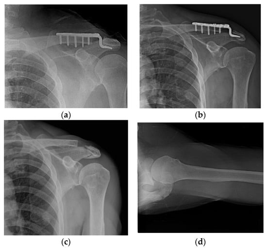 - Hyun, Y.-S.; Kim, G.-L.; Choi, S.-M.; Shin, W.-J.; Seo, D.-Y. A Novel Fluoroscopic View for Positioning the AO Clavicle Hook Plate Decreases Its Associated in situ Complications. Clin. Shoulder Elb. 2016, 19, 25–32. [Google Scholar] [CrossRef][Green Version]