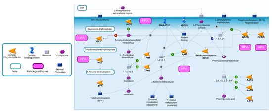 In Table 1, we list all the genes associated with HPA. About 98% of cases are caused by loss-of-function mutations in PAH that, as described before, encodes the enzyme performing the rate-limiting step in Phe catabolism. In a few cases, HPA is associated with mutations of DNAJC12, whose encoded protein controls proper folding and degradation of PAH [26,27]. In the remaining cases, HPA originates from defects in genes encoding enzymes involved in the biosynthesis (GCH1, PTS) or regeneration (PCBD1, QDPR) of BH4, the active cofactor of PAH [28]. Below is a description of each of these genes and their allelic variants.