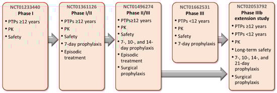 - Kenet, G.; Chambost, H.; Male, C.; Halimeh, S.; Lambert, T.; Li, Y.; Seifert, W.; Santagostino, E. Long-Term Safety and Efficacy of Recombinant Coagulation Factor IX Albumin Fusion Protein (rIX-FP) in Previously Treated Pediatric Patients with Hemophilia B: Results from a Phase 3b Extension Study. Thromb. Haemost. 2020, 120, 599–606. [Google Scholar] [CrossRef] [PubMed] [Green Version]