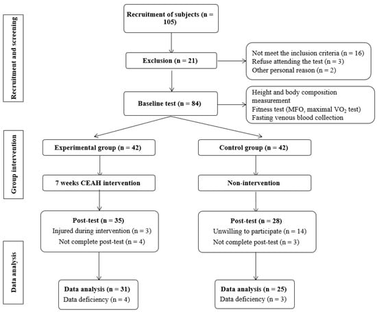 - Meng, L.J. Study on the Influence Mechanism of Exercise Weight Loss on FATmax in Obese Middle-Aged Women. Master’s Thesis, Tianjin Institute of Physical Education, Tianjin, China, 2019. [Google Scholar]