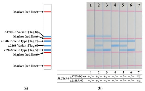 - Kumondai, M.; Ito, A.; Hishinuma, E.; Kikuchi, A.; Saito, T.; Takahashi, M.; Tsukada, C.; Saito, S.; Yasuda, J.; Nagasaki, M.; et al. Development and application of a rapid and sensitive genotyping method for pharmacogene variants using the single-stranded tag hybridization chromatographic printed-array strip (STH-PAS). Drug Metab. Pharmacokinet. 2018, 33, 258–263. [Google Scholar] [CrossRef] [PubMed]
