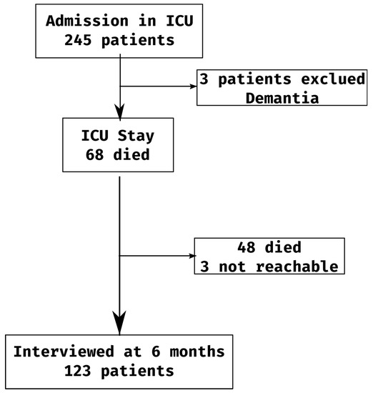 - Khouli, H.; Astua, A.; Dombrowski, W.; Ahmad, F.; Homel, P.; Shapiro, J.; Singh, J.; Nallamothu, R.; Mahbub, H.; Eden, E.; et al. Changes in health-related quality of life and factors predicting long-term outcomes in older adults admitted to intensive care units. Crit. Care Med. 2011, 39, 731–737. [Google Scholar] [CrossRef]