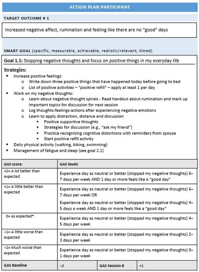 - Grant, M.; Ponsford, J. Goal Attainment Scaling in brain injury rehabilitation: Strengths, limitations and recommendations for future applications. Neuropsychol. Rehabil. 2014, 24, 661–677. [Google Scholar] [CrossRef] [PubMed]