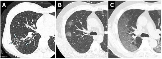 - Ito, S.; Ishida, T.; Togashi, K.; Niimi, A.; Koyama, H.; Ishimori, T.; Kobayashi, H.; Mishima, M. Differentiation of bacterial and non-bacterial community-acquired pneumonia by thin-section computed tomography. Eur. J. Radiol. 2009, 72, 388–395. [Google Scholar] [CrossRef] [PubMed][Green Version]