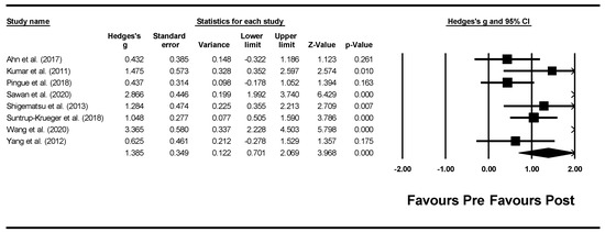 Comprehensive Meta-Analysis Version 3.3.070 [22] software was used to complete the meta-analysis, allowing comparison of sample size, effect size, group means and standard deviations of pre- and post-measurements. In the case that no parametric data were available, the reported non-parametric data (i.e., medians, interquartile ranges) were converted into parametric data for meta-analysis purposes. Studies with multiple intervention groups were analysed separately for each experimental-control comparison. If studies included the same participants, only one study was included in the meta-analysis. Where reported data were insufficient, attempts were made to contact authors of individual studies and request additional data.