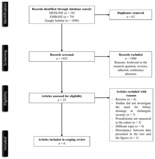 In conclusion, this scoping review identified that the current body of evidence regarding the usefulness of serum PCT in assessing the severity of AC, and potential cut-off values for the need for urgent biliary decompression, remains scarce. However, future studies are warranted to see whether elevated PCT may help triage those who benefit from emergent interventions among patients with AC due to biliary obstructions from different etiologies.