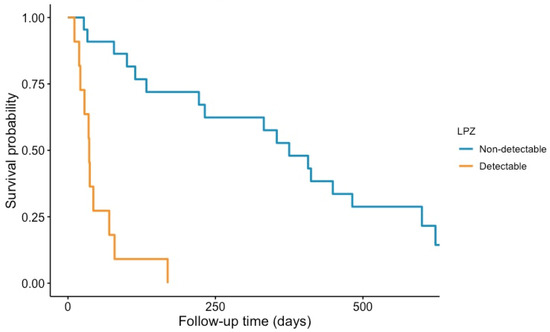 Kaplan–Meier plots for all-cause mortality in pre-transplant cirrhotic patients according to detectable plasma LP-Z concentrations. Log-rank test p < 0.001.