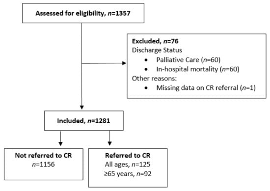 The following are available online at https://www.mdpi.com/article/10.3390/jcm11051232/s1: Table S1. Baseline patient characteristics among all patients and those referred and not referred to cardiac rehabilitation (all data reported).