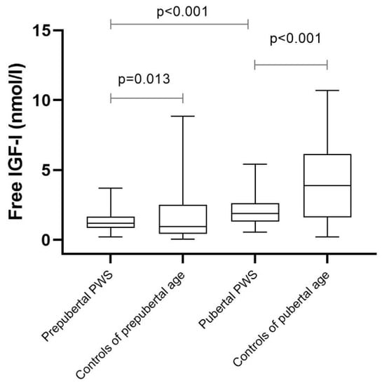 3.2. Serum Free IGF-I and Immunoreactive IGF-I in Prepubertal and Pubertal Children with PWS