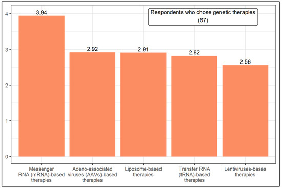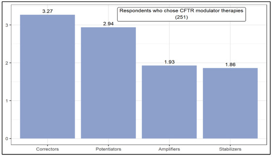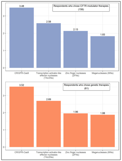 | Wilcoxon rank test | (1) CFTR modulator therapies are the predominant option. (2) Respondents who choose CFTR modulator therapies expect that a cure will take more than 15 years. (3) Respondents who choose genetic therapies expect that a cure will take less than 15 years. | |