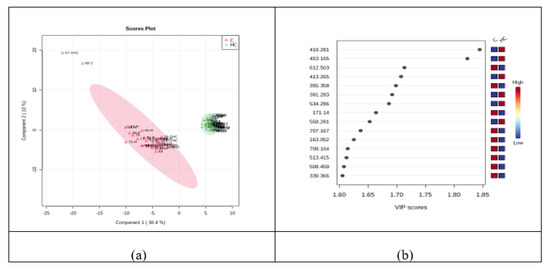 3.2.2. Discrimination Analysis: PCA and PLSDA for HC vs. C Groups