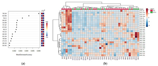 3.2.3. Random Forest Analysis, Heatmaps and Biomarker Analysis for HC vs. C Groups