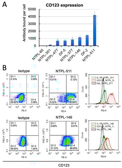 2.2. Flow Cytometry and Quantitation of CD123 Cell Surface Expression
