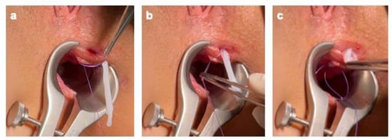 - Roshanravan, R.; Ghahramani, L.; Hosseinzadeh, M.; Mohammadipour, M.; Moslemi, S.; Rezaianzadeh, A.; Safarpour, A.R.; Rahimikazerooni, S.; Hosseini, S.V. A new method to repair recto-vaginal fistula: Use of human amniotic membrane in an animal model. Adv. Biomed. Res. 2014, 3, 114. [Google Scholar] [CrossRef]