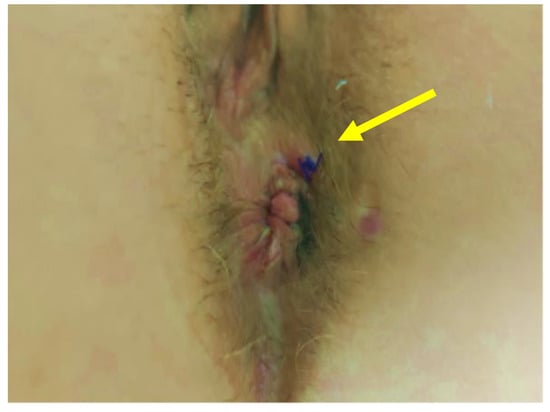 The more accredited theory on the etiology of perianal fistulas dates back to 1961, and considers infection of the anal canal glands as the initial source of the problem []. Since then, no other significant advances have been established in the field, even if it has been shown that the chronic phase of the disease is more related to a dysregulated inflammatory process rather than an infectious condition [,]. In 2013, van Onkelen et al. demonstrated that in 9 out of 10 excised anal fistulas there were traces of peptidoglycan, a component of the bacterial wall, hypothesizing that it could be related to the secretion of pro-inflammatory cytokines [].