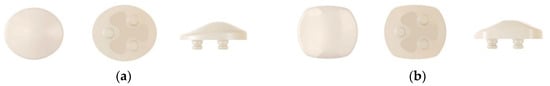 Anteroposterior and lateral views of two types of patellar components. (a) Medialized dome type and (b) anatomic type.