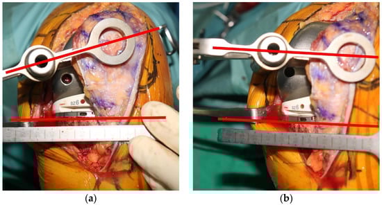 Radiographic images were retrieved using a picture-archiving and communication system (PACS; IMPAX, Agfa Healthcare, Mortsel, Belgium), and radiographic measurements were performed at regular follow-ups by another independent observer of the operative team. Radiographic evaluations included the patellar tilt angle and the lateral patellar shift on a Merchant view radiograph. The patellar tilt angle was set as the angle between the line crossing the widest portion of the patella and the line passing through the most anterior surface of both femoral condyles [20,21].