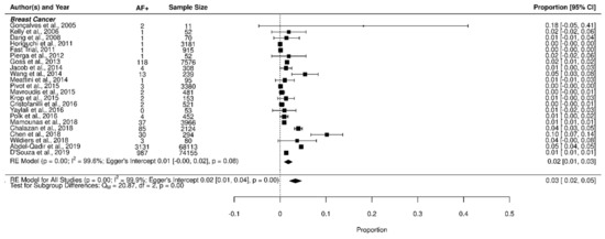 In the current meta-analysis, we evaluated the incidence of AF in breast cancer (BC) patients. As far as we know this is the first meta-analysis that addresses this association related to anti-cancer therapies and cancer stages.