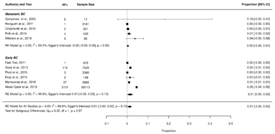 3.4. AF in Early vs. Metastatic Breast Cancer