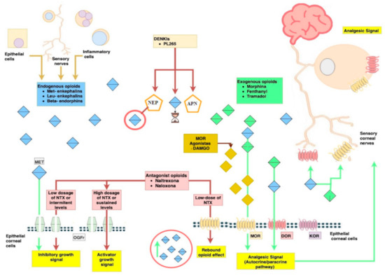 García-López, C.; Gómez-Huertas, C.; Sánchez-González, J.-M.; Borroni, D.; Rodríguez-Calvo-de-Mora, M.; Romano, V.; Rachwani-Anil, R.; Ramos-López, J.-F.; Ortiz-Pérez, S.; Rocha-de-Lossada, C. Opioids and Ocular Surface Pathology: A Literature Review of New Treatments Horizons. J. Clin. Med. 2022, 11, 1424. https://doi.org/10.3390/jcm11051424