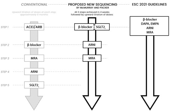- McMurray, J.J.V.; Packer, M. How Should We Sequence the Treatments for Heart Failure and a Reduced Ejection Fraction?: A Redefinition of Evidence-Based Medicine. Circulation 2021, 143, 875–877. [Google Scholar] [CrossRef]
