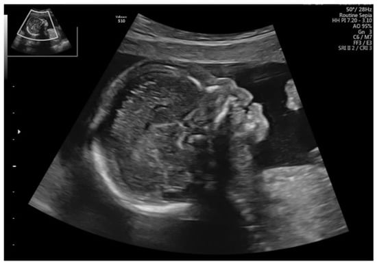 Nasal bone hypoplasia is one of the phenotypic features of trisomy 21. It is also observed in association with trisomy 18 and 13 [1,2]. The condition may result in facial dysmorphism and may also be seen in other, rarer genetic syndromes. Individual cases have been associated with Wolf–Hirschhorn syndrome or Cri-du-chat syndrome [3]. In recent years, chromosomal microarray analysis (CMA) has been recommended as first-line genetic testing in prenatal diagnosis. CMA offers higher test resolution than traditional G-band karyotyping, and provides additional information in 6–7% of pregnancies with abnormal ultrasound findings [4]. Whole exome sequencing (WES) yields a diagnosis of the underlying genetic cause in 25–35% of children with an unexplained presumed genetic disorder [5]. WES improved the identification of genetic disorders in fetuses with structural abnormalities and showed an underlying genetic cause in 10% of fetuses that were negative in karyotype tasting and CMA [6]. Although new techniques allow for more detailed prenatal genetic diagnosis, the awareness of women, regarding prenatal testing, is still low.
