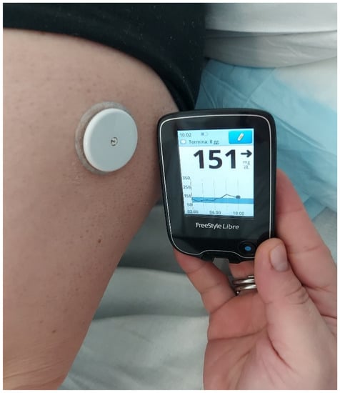 Consequently, in many recent studies, glucose measurement by continuous glucose monitoring (CGM) has been performed during dialysis. This technology works thanks to a glucose-oxidase-based platinum electrode through an attachment needle into the subcutaneous tissue []. The oxidation of glucose in the interstitial fluid generates an electrical current transmitted to a receiver unit (Figure 2).
