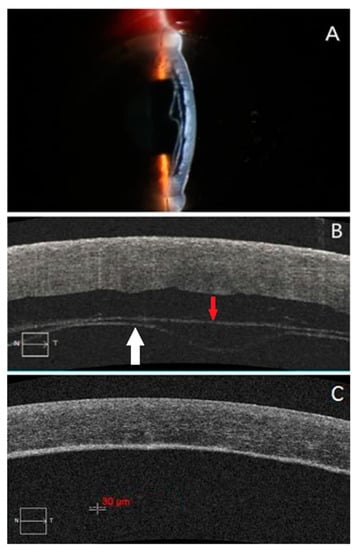 - Dua, H.S.; Sinha, R.; D’Souza, S.; Potgieter, F.; Ross, A.; Kenawy, M.; Scott, I.; Said, D.G. “Descemet Membrane Detachment”: A Novel Concept in Diagnosis and Classi-fication. Am. J. Ophthalmol. 2020, 218, 84–98. [Google Scholar] [CrossRef] [PubMed]