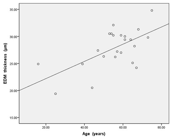 | No. | Age (year) | The EDM Thickness on the First Examination (μm) | The EDM Thickness on the Second Examination (μm) | The Interval between Two Examinations (day) | The DMD Cause |