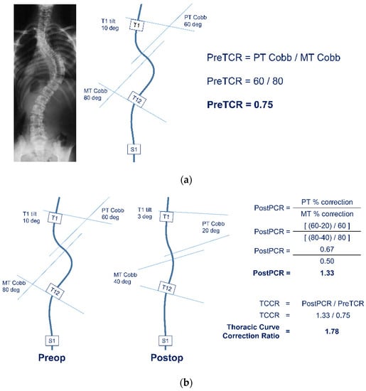 - Thoracic Curve Correction Ratio (TCCR) = [PostPCR/PreTCR] (Figure 1b)