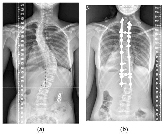 - Namikawa, T.; Matsumura, A.; Kato, M.; Hayashi, K.; Nakamura, H. Radiological assessment of shoulder balance following posterior spinal fusion for thoracic adolescent idiopathic scoliosis. Scoliosis 2015, 10 (Suppl. S2), S18. [Google Scholar] [CrossRef] [PubMed]