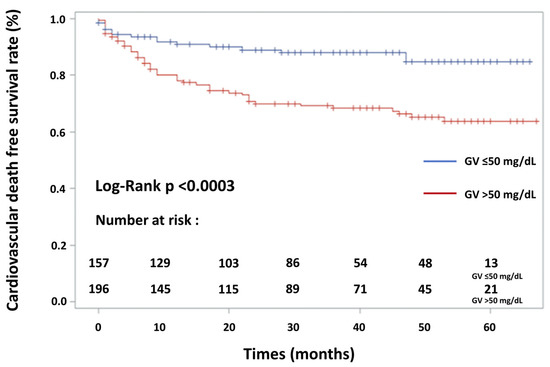 | Baseline Characteristics | GV ≤ 50 mg/dL | GV > 50 mg/dL | p Value |