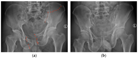 - Ead, M.S.; Westover, L.; Polege, S.; McClelland, S.; Jaremko, J.L.; Duke, K.K. Virtual reconstruction of unilateral pelvic fractures by using pelvic symmetry. Int. J. Comput. Assist. Radiol. Surg. 2020, 15, 1267–1277. [Google Scholar] [CrossRef]