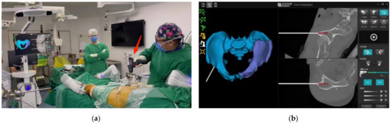 - Shi, C.; Zhao, X.; Wu, X.; Zhao, C.; Zhu, G.; Shi, S.; Wang, Y. Real-time 3D Navigation-based Semi-Automatic Surgical Robotic System for Pelvic Fracture Reduction. In Proceedings of the 2021 IEEE/RSJ International Conference on Intelligent Robots and Systems (IROS), Prague, Czech Republic, 27 September–1 October 2021; pp. 9498–9503. [Google Scholar]
