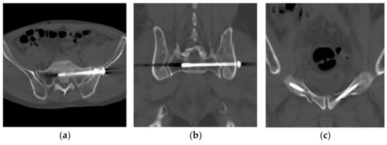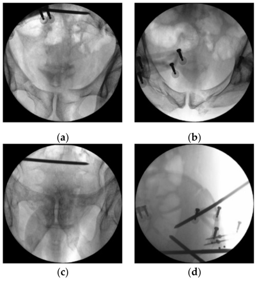 - Long, T.; Li, K.N.; Gao, J.H.; Liu, T.H.; Mu, J.S.; Wang, X.J.; Peng, C.; He, Z.Y. Comparative Study of Percutaneous Sacroiliac Screw with or without TiRobot Assistance for Treating Pelvic Posterior Ring Fractures. Orthop. Surg. 2019, 11, 386–396. [Google Scholar] [CrossRef]