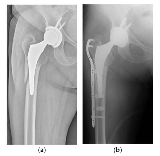 - Khan, T.; Grindlay, D.; Ollivere, B.J.; Scammell, B.E.; Manktelow, A.R.; Pearson, R.G. A systematic review of Vancouver B2 and B3 periprosthetic femoral fractures. Bone Jt. J. 2017, 99-B, 17–25. [Google Scholar] [CrossRef] [PubMed]